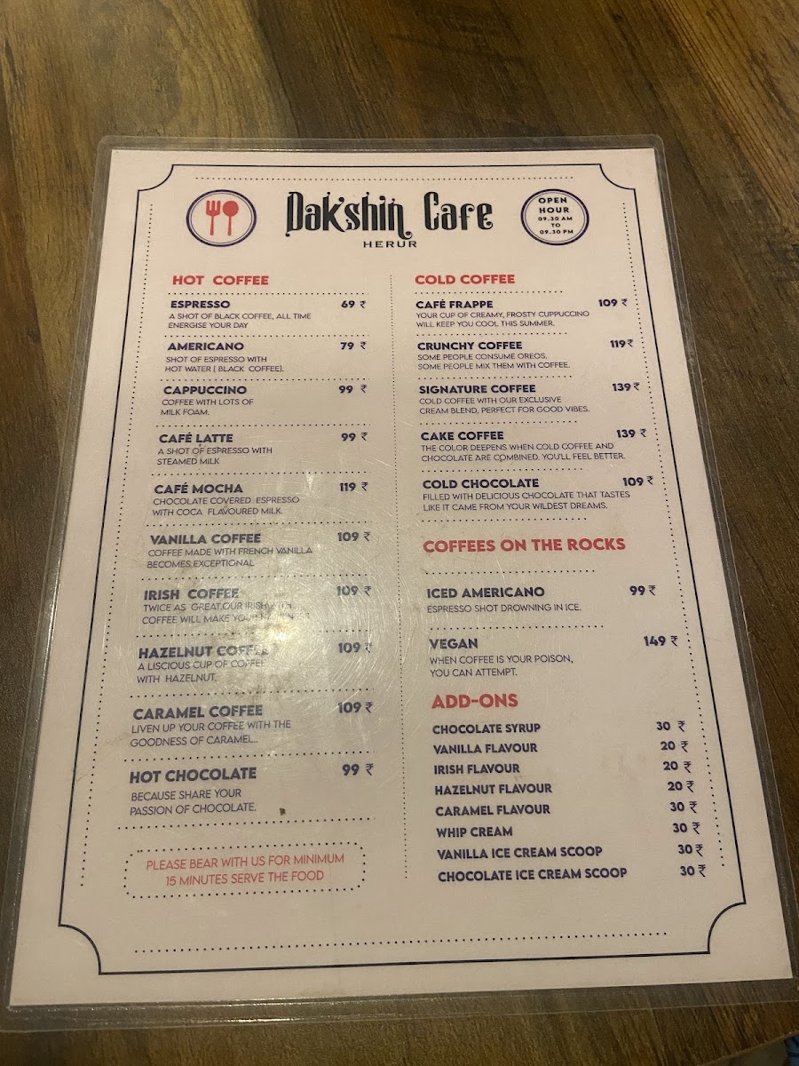 Customer reviews reflect the warm vibe and exceptional service that Dakshin Cafe is known for. Eldrich Pereira raves about the delicious food and friendly staff, while Varun Sahgal appreciates the inviting ambiance that makes every meal feel special. Dinesh Velu notes how efficient the service is, even during odd hours, ensuring that guests feel attended to and satisfied. The cafe has garnered praise for maintaining cleanliness and hygiene, which is a crucial aspect for many diners.
